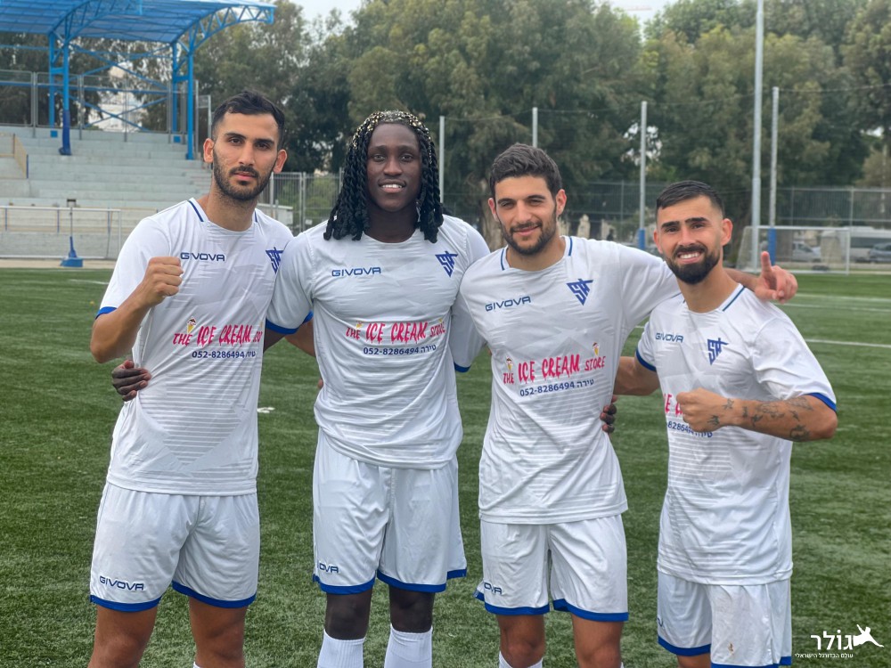 צילום:דובורת טירה. מבקיעי השערים וליאל כהן בתפקיד המבשל היום בנצחון של טירה בחוץ על אשדוד