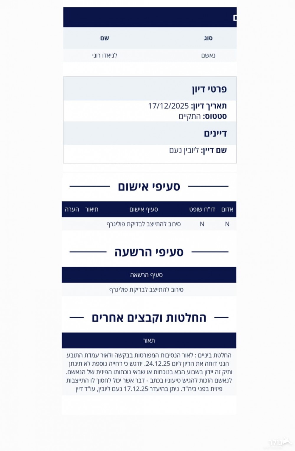 הדיין הבהיר: אם לניאדו לא יתייצב לדיון הבא (24.12.25), יהיה עליו להגיש את עמדתו בכתב ולא תינתן כל דחייה נוספת.