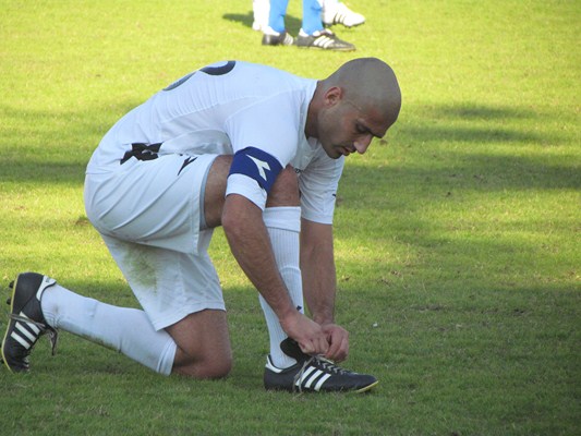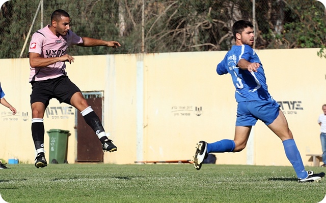 אלירן מגול(משמאל). החלוץ המצוין רוצה לרשום עלייה נופת,הפעם במדי באר יעקב.(צילום:לירן דורף)